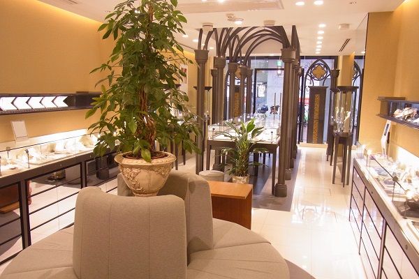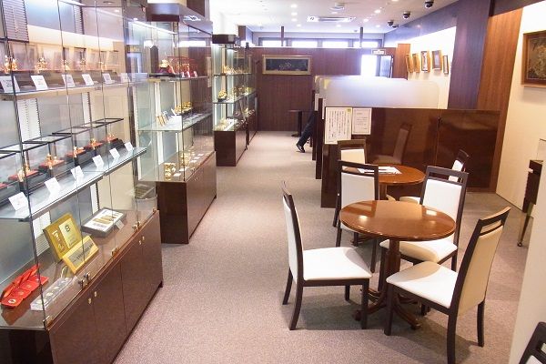 中央に椅子がありますので、商品をゆっくりご覧いただけます。