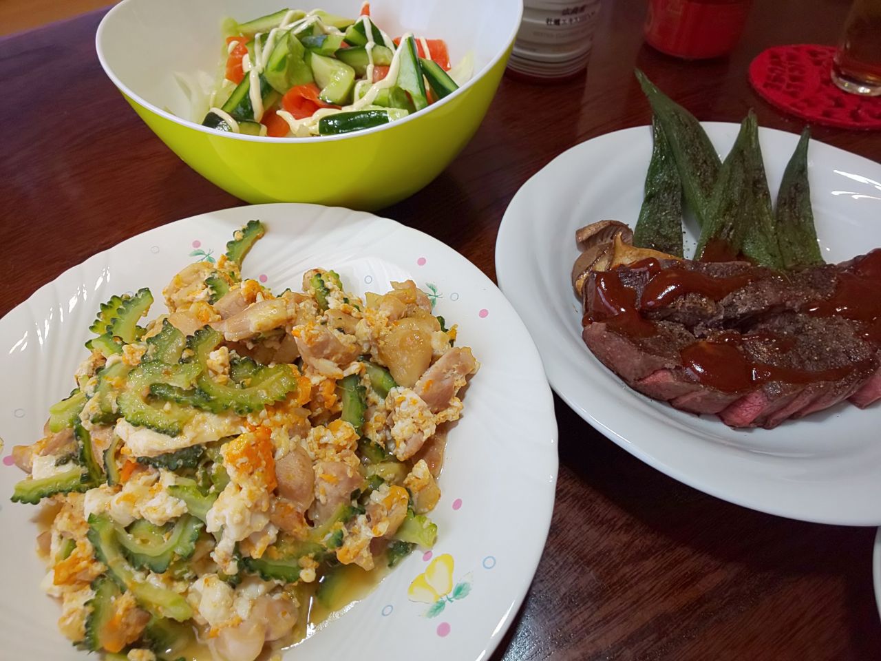 ってなワケで・・・お肉にゴーヤに夏野菜サラダ