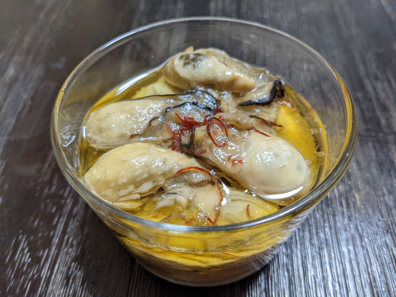 むきカキはニンニクと唐辛子の