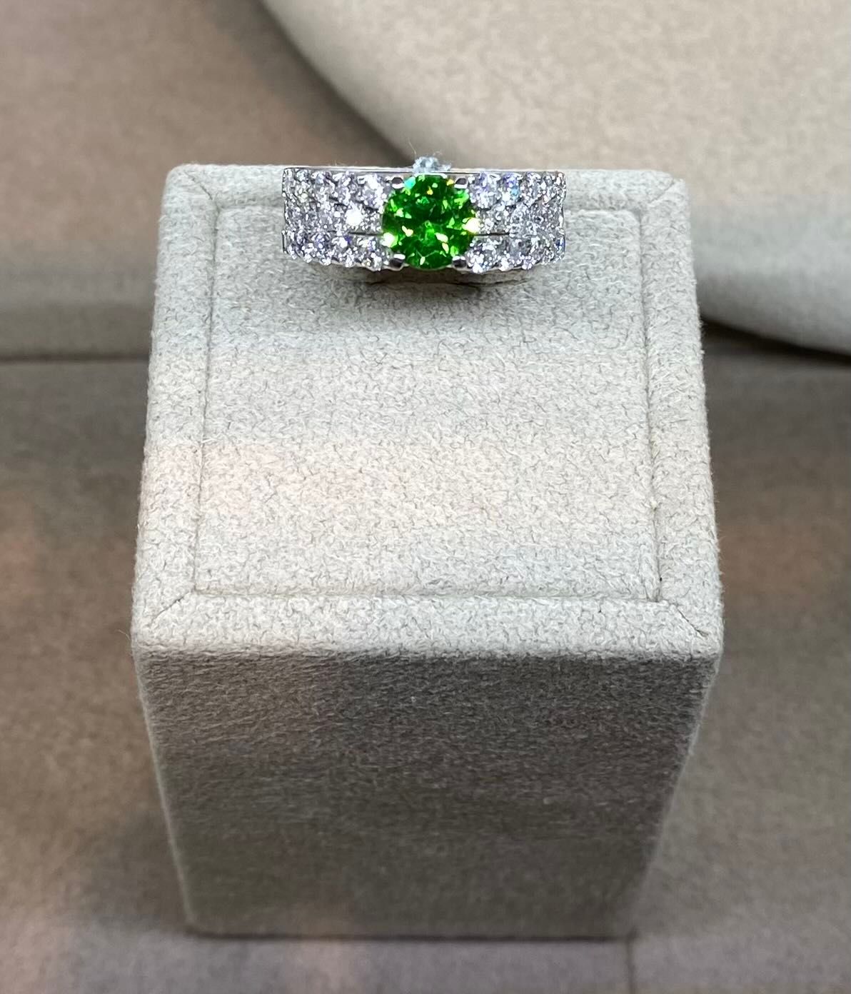 デマントイドガーネットは、鮮やかな緑色と高い分散率による