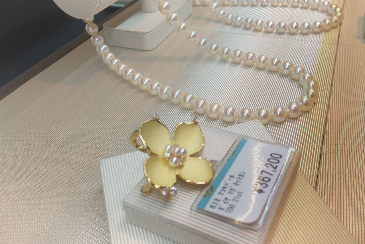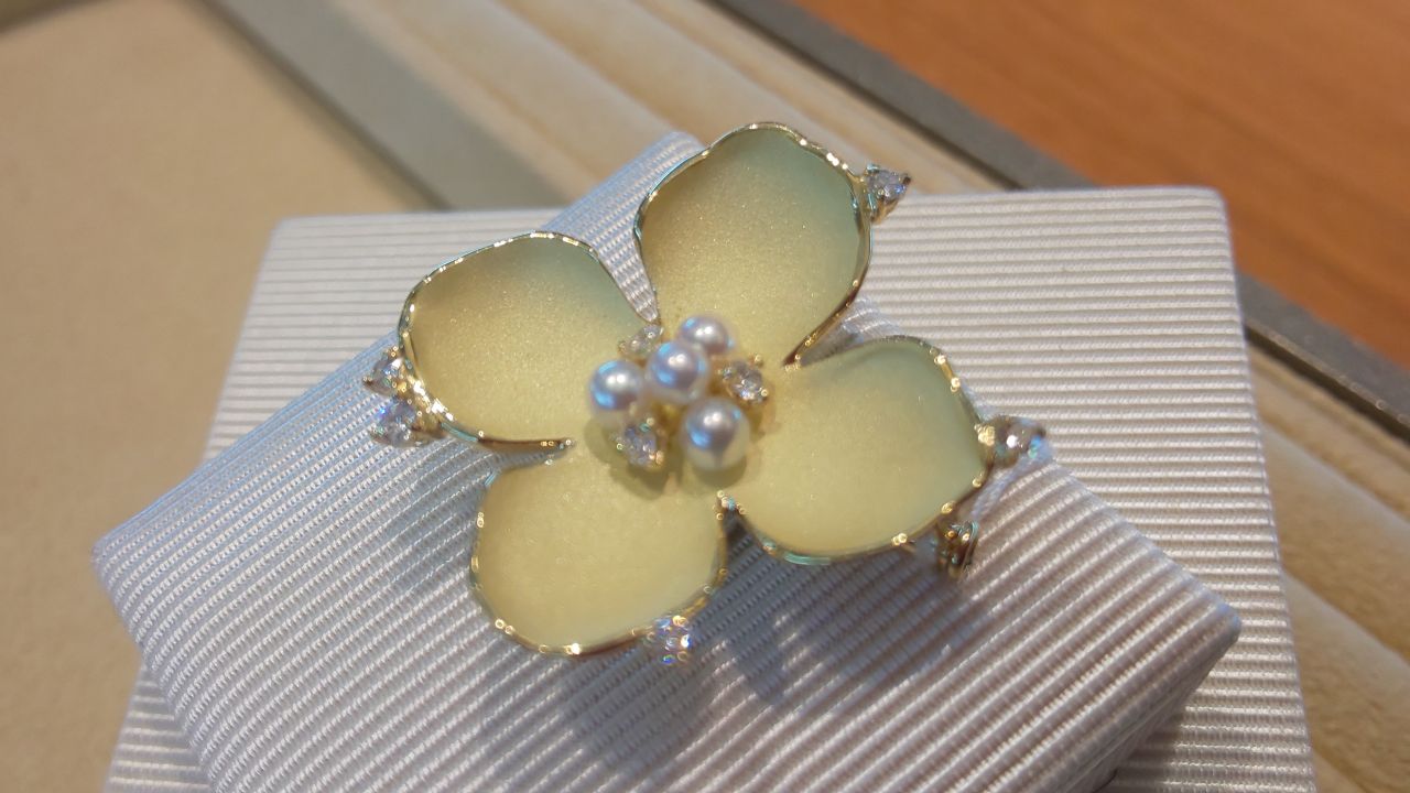 中央にはアコヤ真珠とダイヤモンドがもりもり