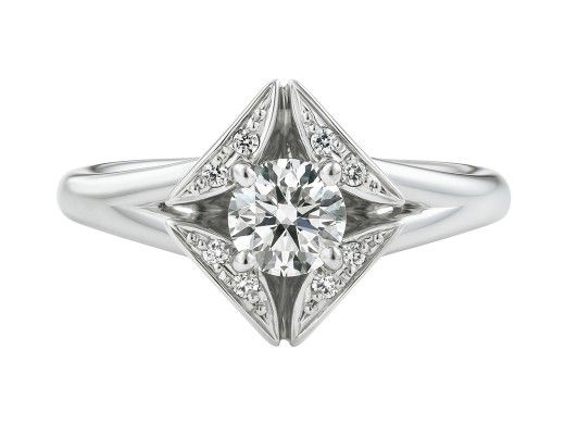 ダイヤモンドのパヴェに囲まれた中心のダイヤモンドが、