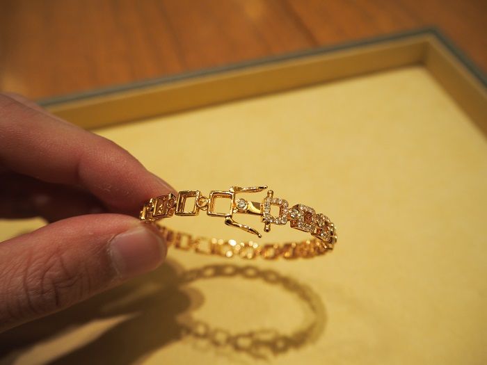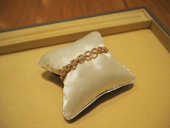 ピンクゴールドを使用したバングルは、本店では珍しいですよ。