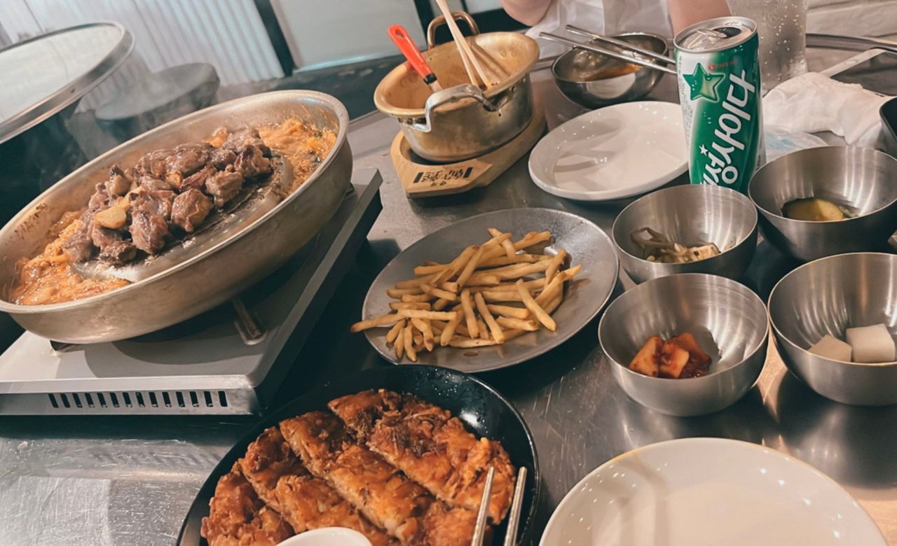 豚肉のハラミを卵とキムチで食べる、韓国でポピュラーな料理。