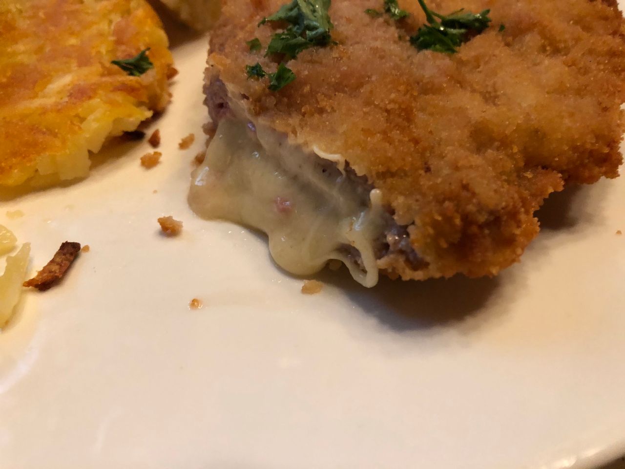 お昼に食べたスイスの郷土料理であるコルドンブルーはとても美味しかったです。