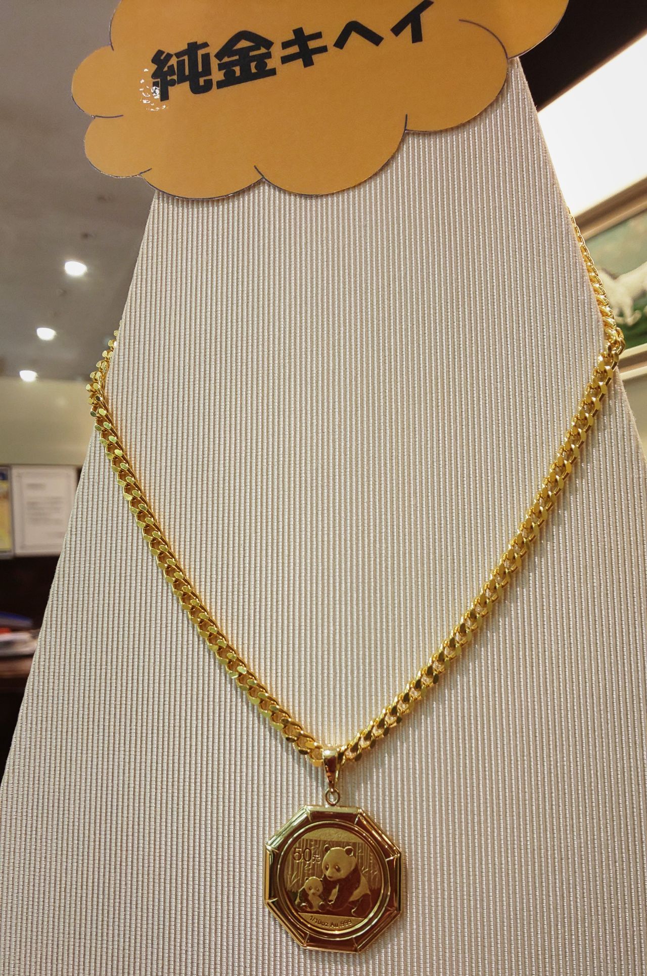 純金製キヘイネックレス 2面シングル 30g×50cm 参考価格¥287,500