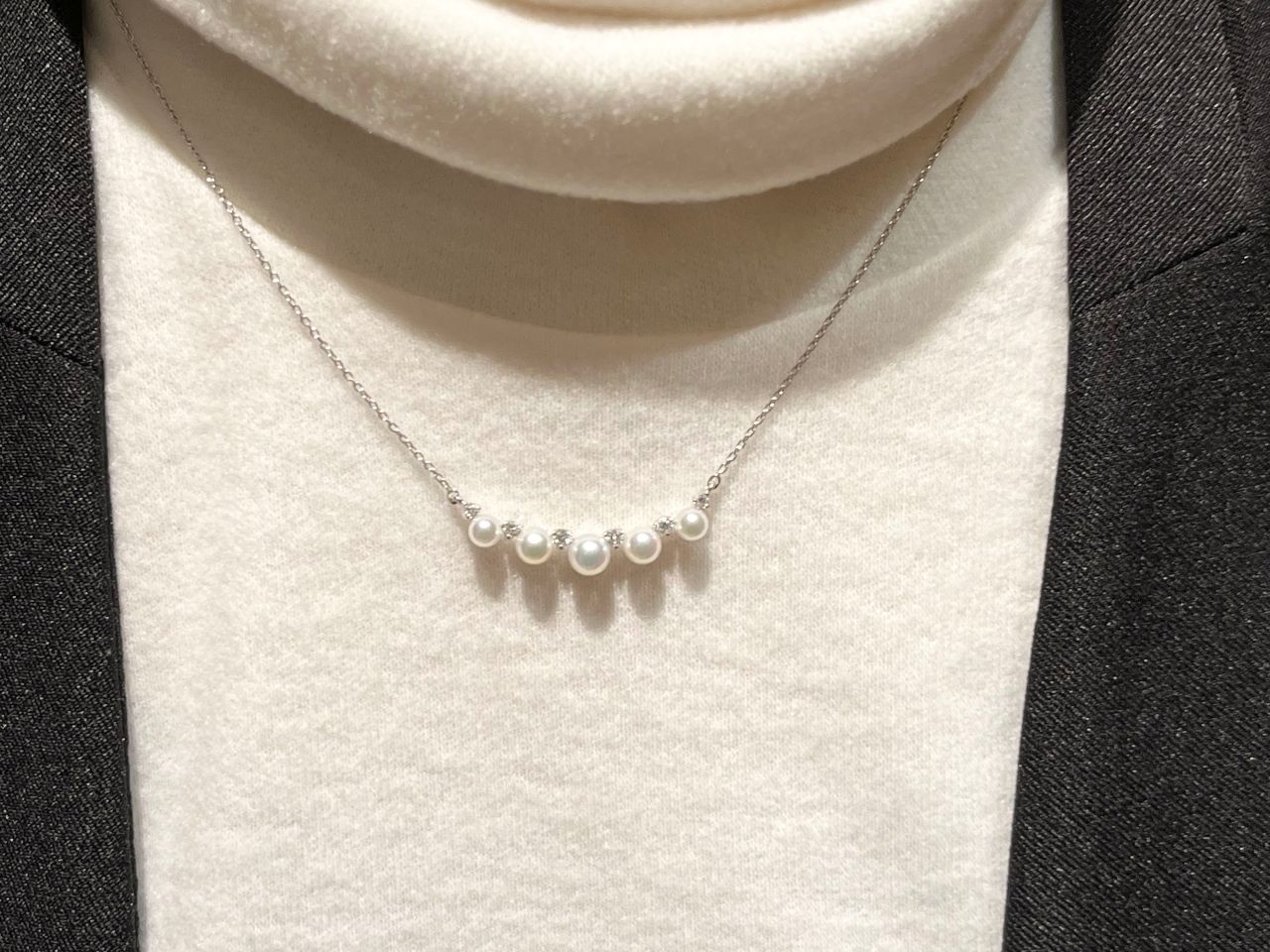 パールネックレスと言えば、連のものを想像される方が多いと思いますが、最近はカジュアルシーンでも使えるファッショナブルなデザインも多くあります!!