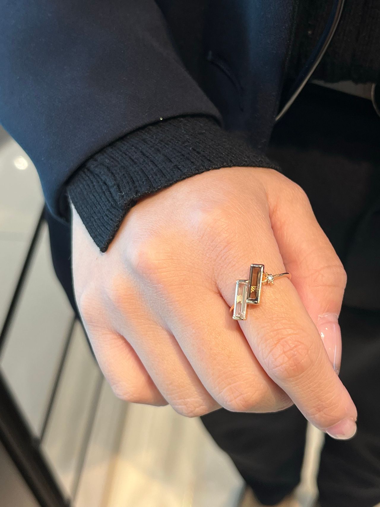 リングは「スモーキークオーツ」と「クリスタル」の組み合わせです。