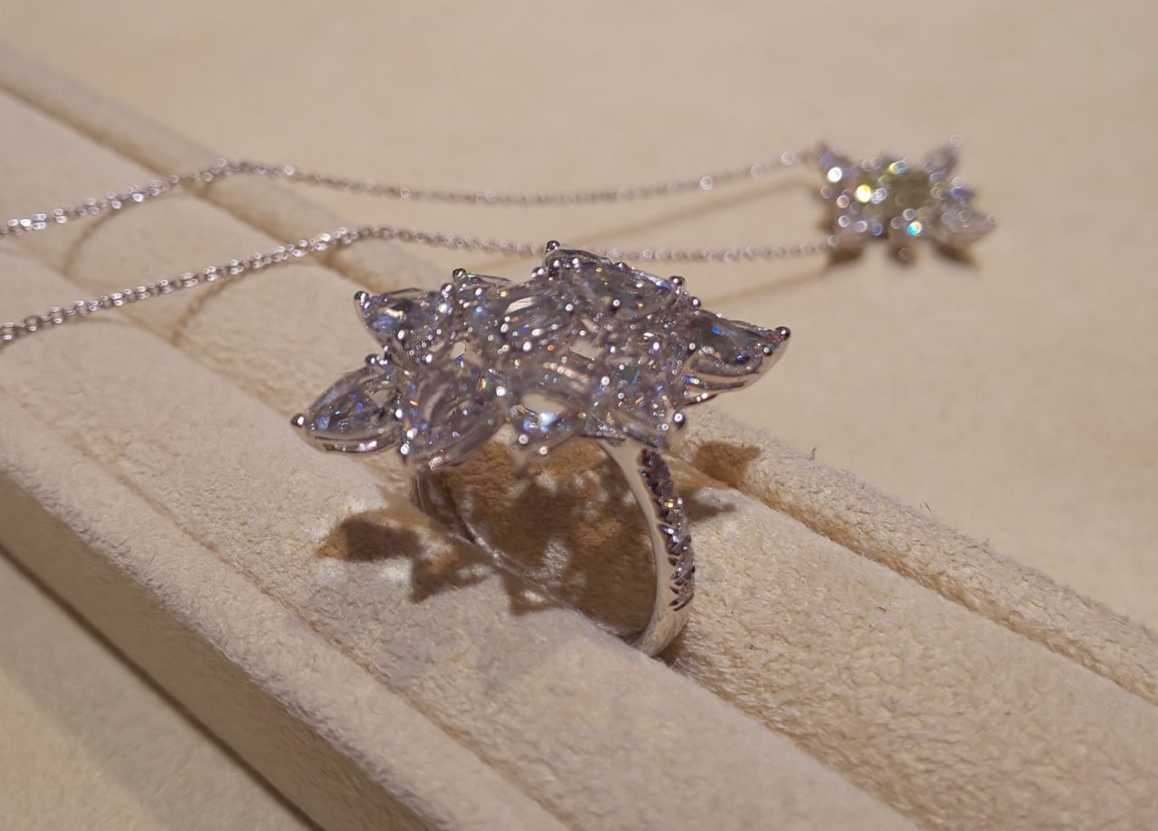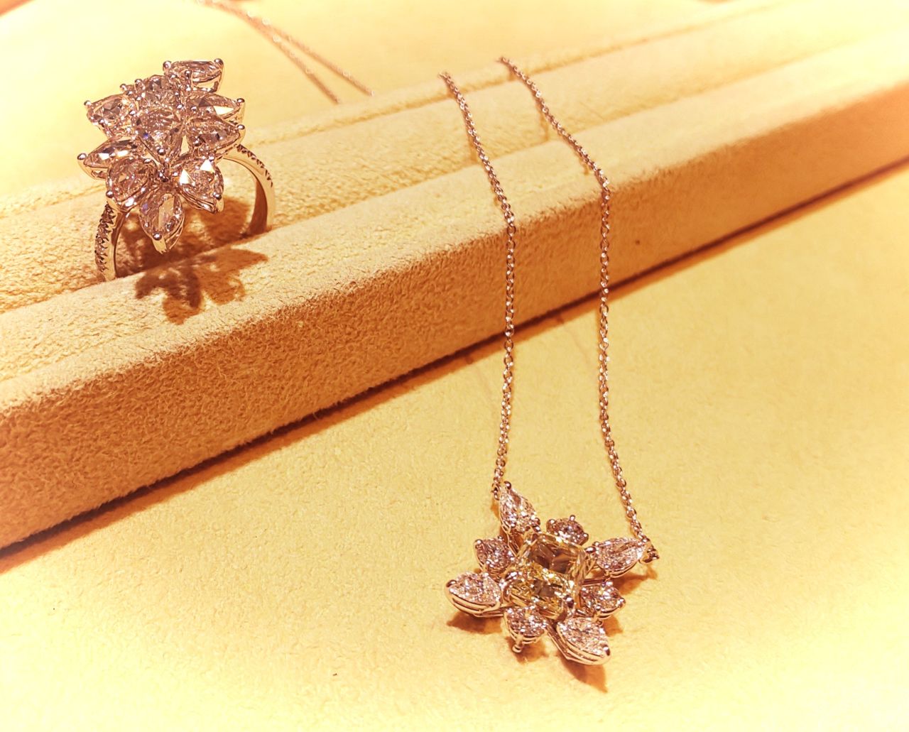 ファンシーカットのトータル3カラットものダイヤを使用した