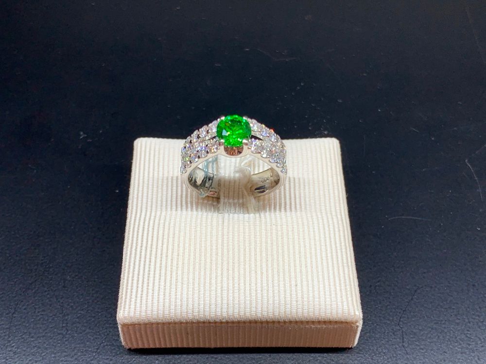 デマントイドガーネットは非常に高い分散率を有しているため、その輝きはダイヤモンドに引けをとらない宝石です。