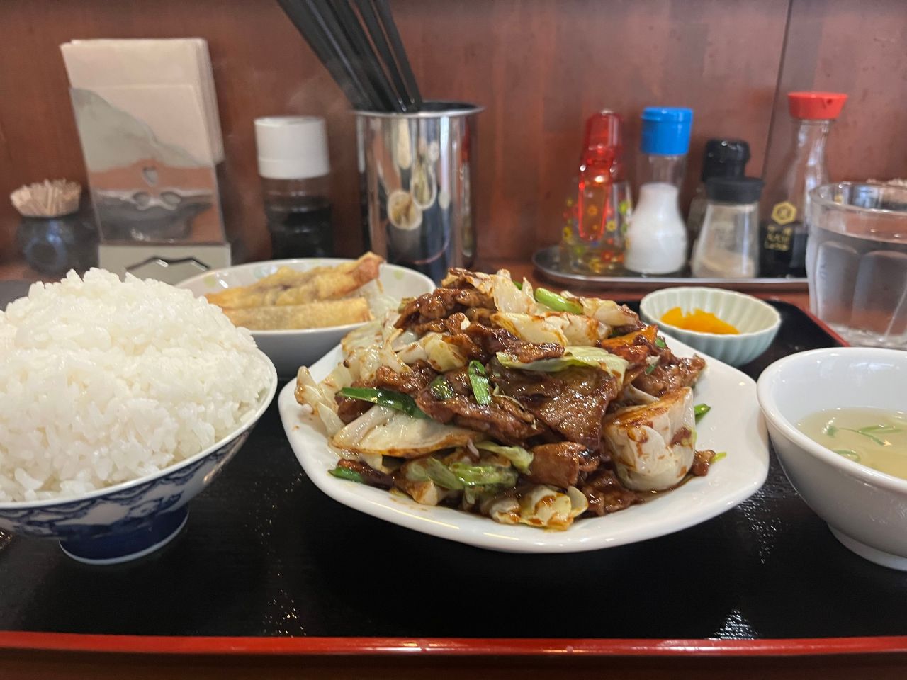 下はせめて栄養はしっかり摂ろうと、立ち寄った中華料理店の定食です。