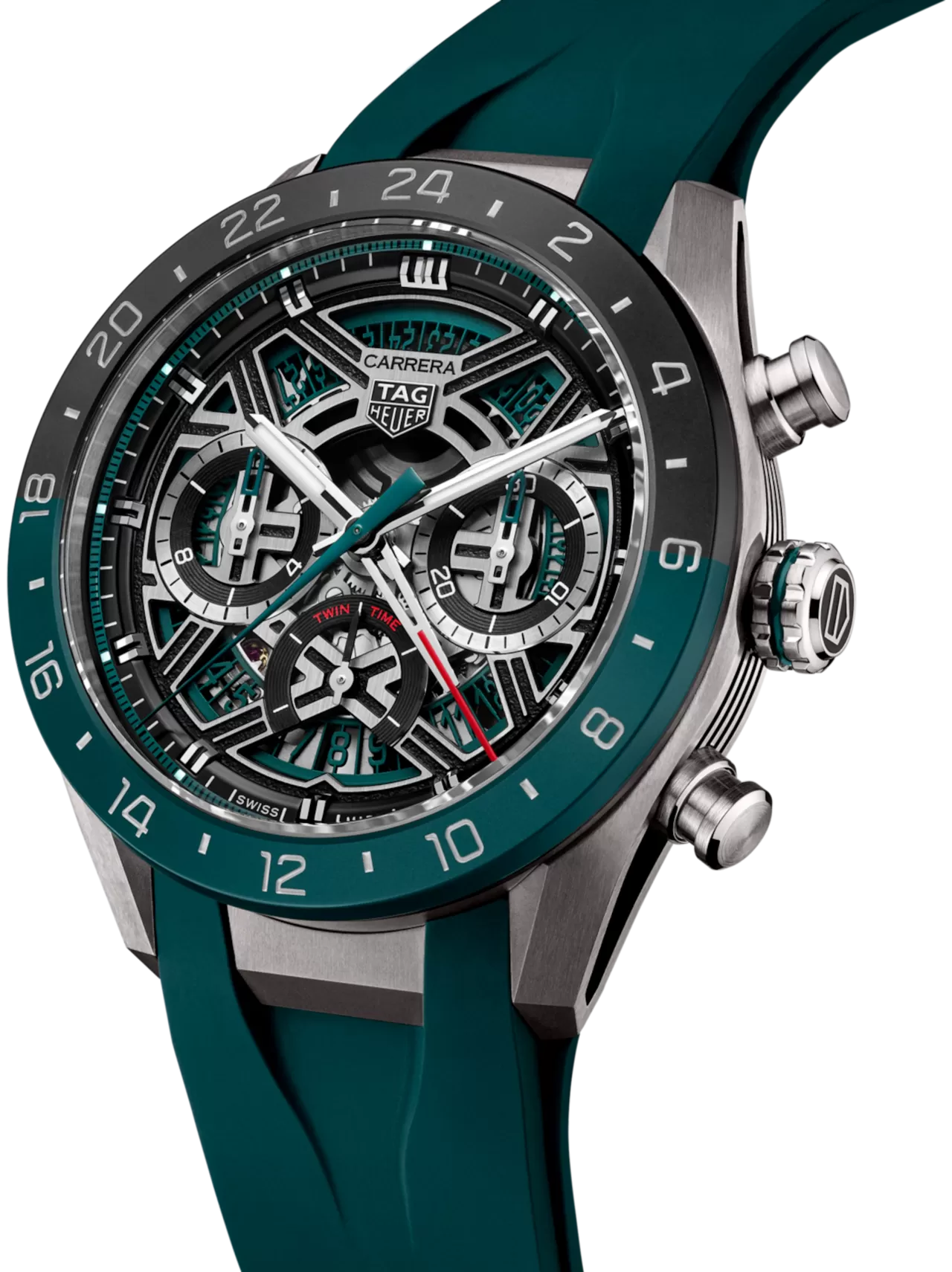 オープンワークのダイヤルはモータースポーツにインスピレーションを得ており、