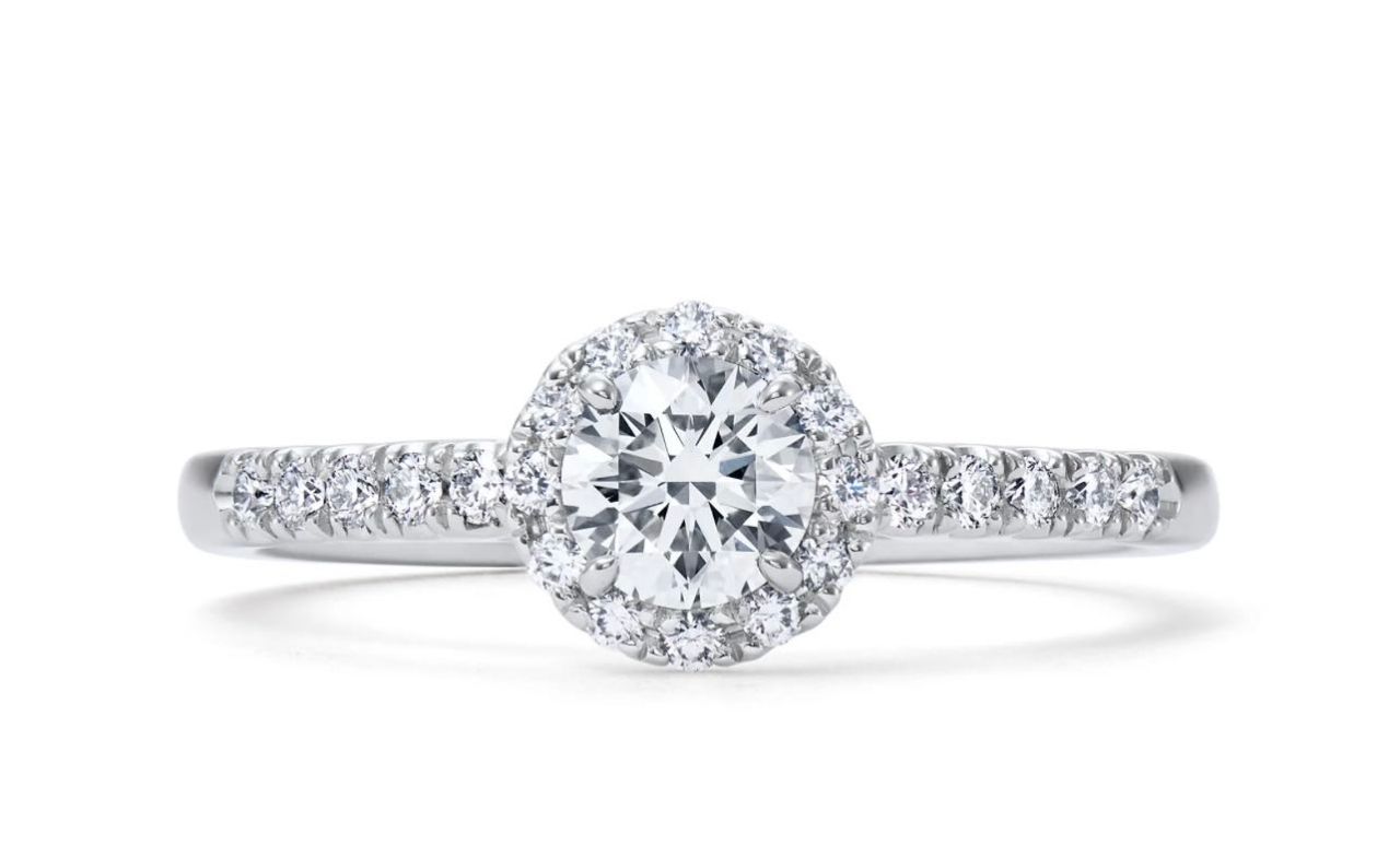 センターダイヤモンドを取り巻きのメれダイヤモンドより