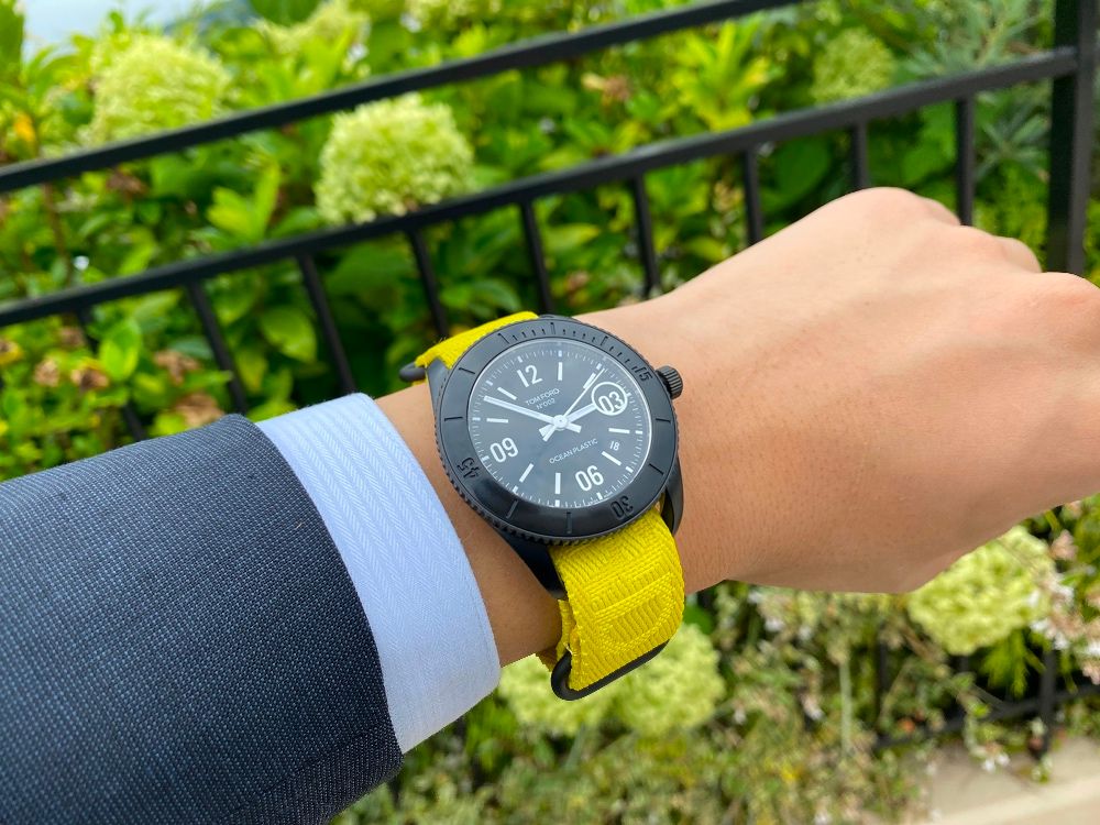 この時計、実は100%リサイクルされた海洋プラスチックで出来た初の自動巻き時計です。