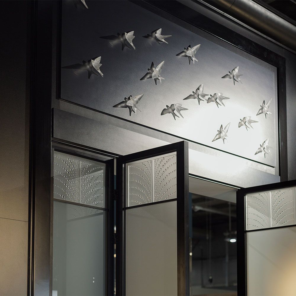 ラリックの創始者のルネ・ラリックは、動物の中でもツバメから格別なインスピレーションを得て、様々なジュエリーや装飾品のセンターピースを創作しました