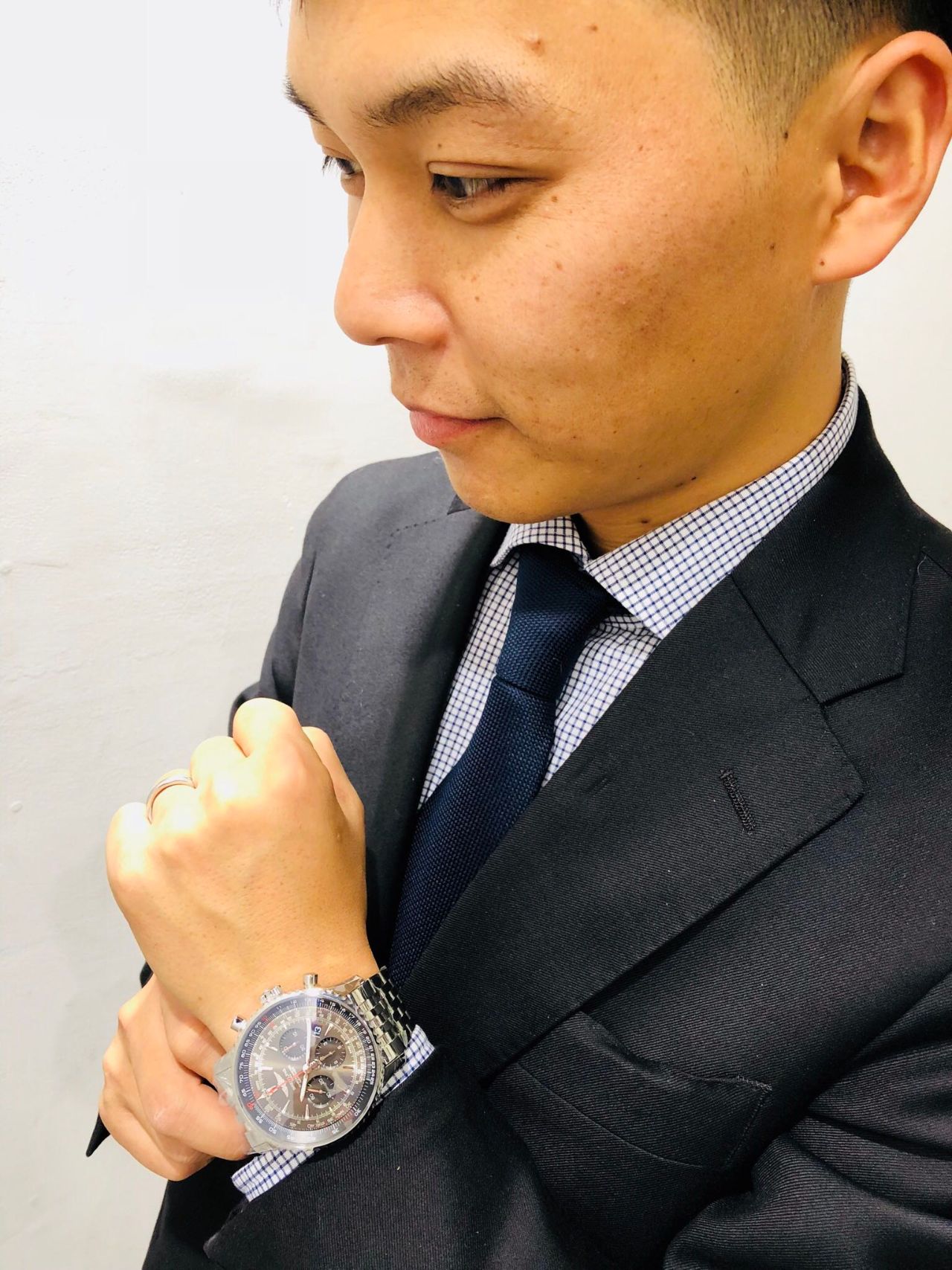ブライトリングは、レザーストラップのバリエーションも豊富なので、今の季節はブラックやバーガンディーに変えて頂いてもとてもお洒落ですよ♪