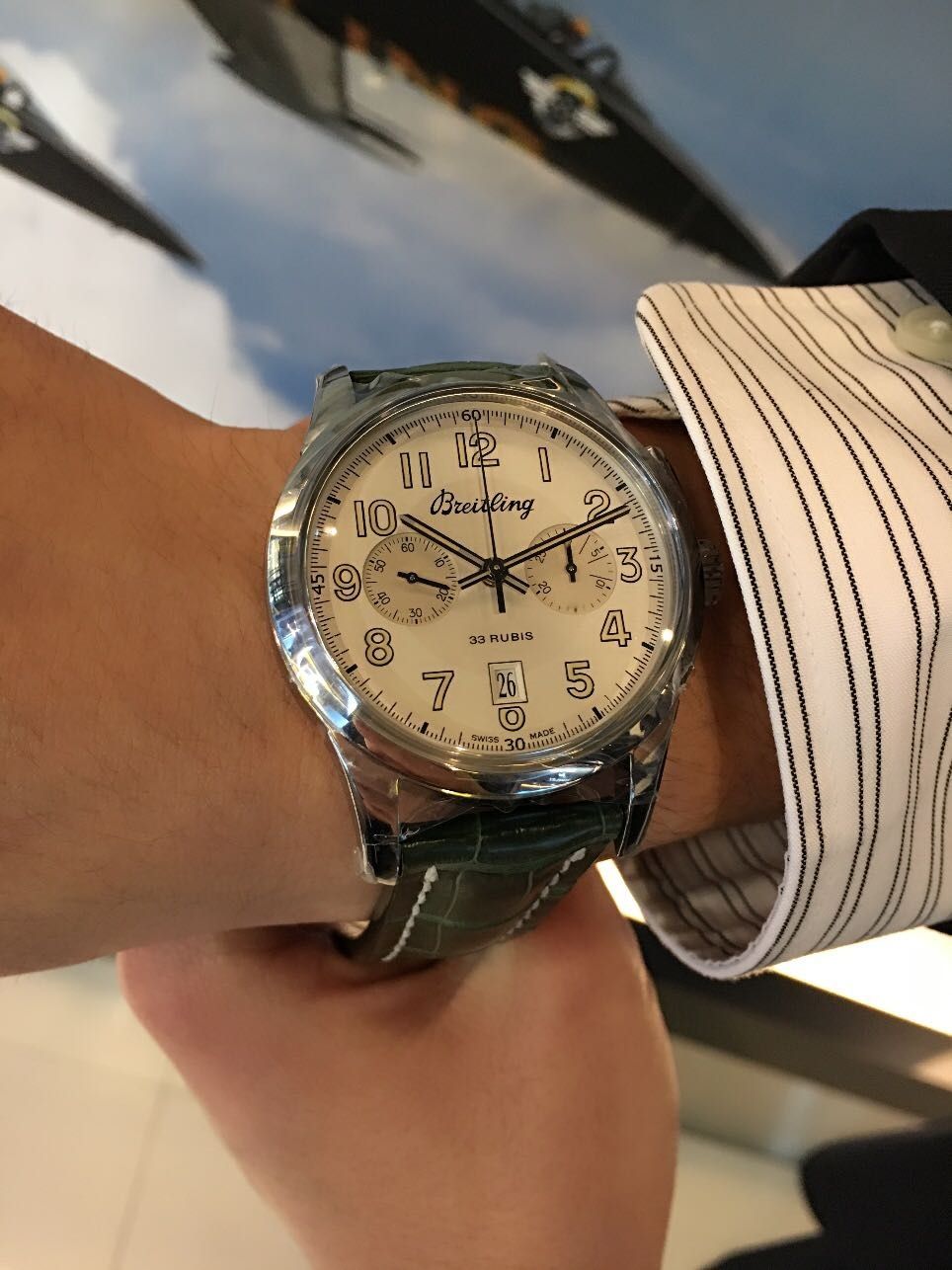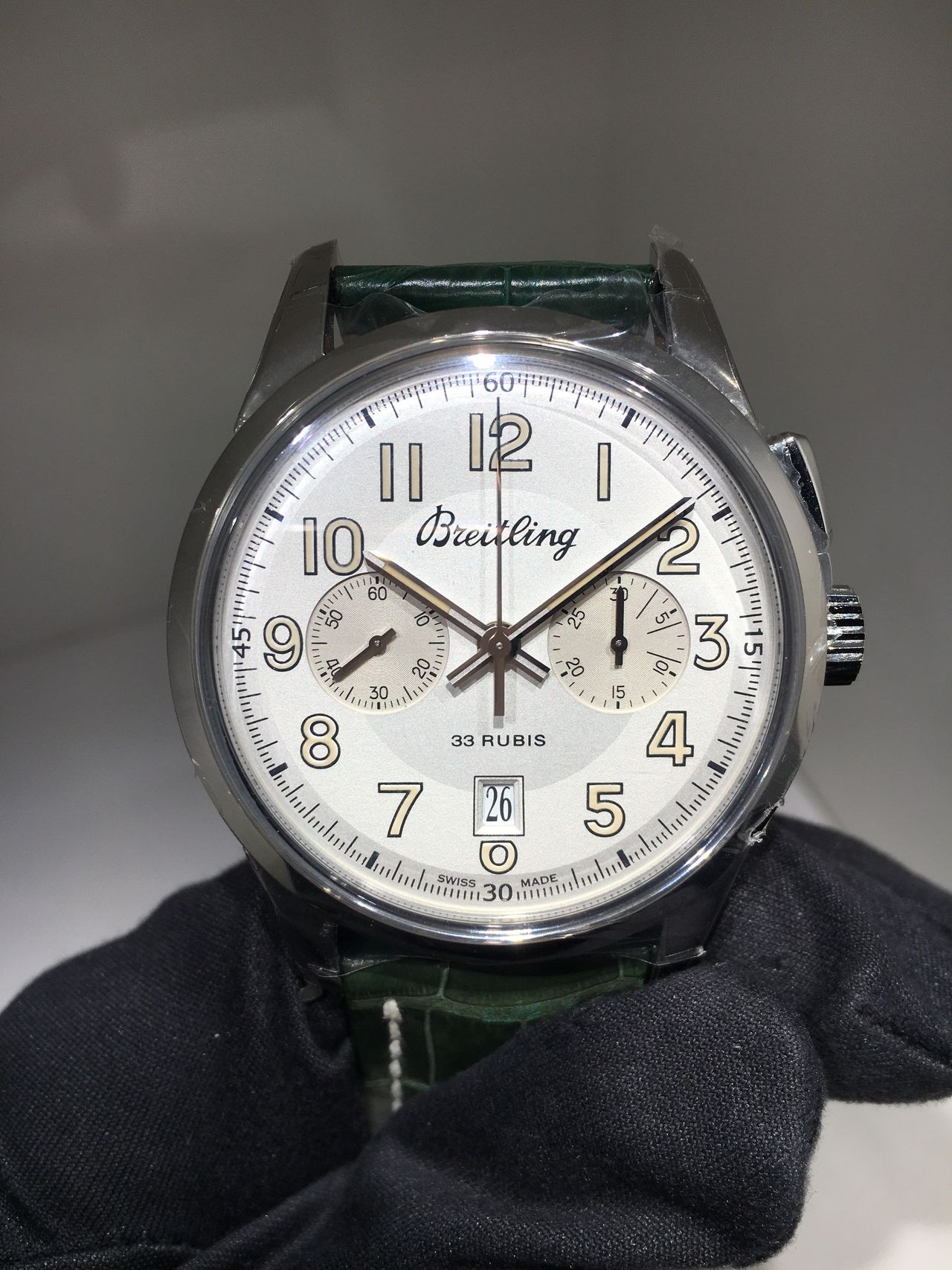こちらは1915年、ブライトリングが今日のクロノグラフの原型となる、独立したクロノグラフ専用プッシュボタンを備えたモデルを発表し、100年を記念したモデルです(o^^o)
