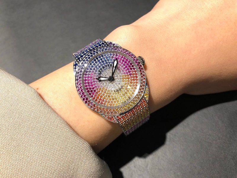 ダイヤモンドとサファイアがふんだんに使用されているなんとも贅沢な時計です°˖✧◝(⁰▿⁰)◜✧˖°