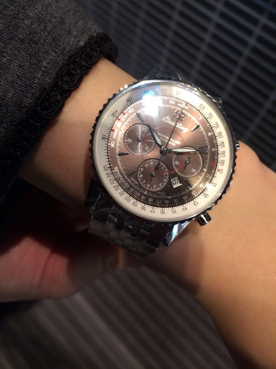 回転計算尺を使い、掛け算や割り算が可能で、パイロットが残り燃料や時速を計算する事ができる、本格航空機械式時計です☆
