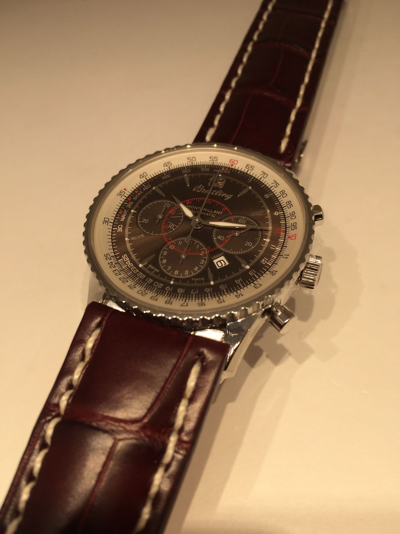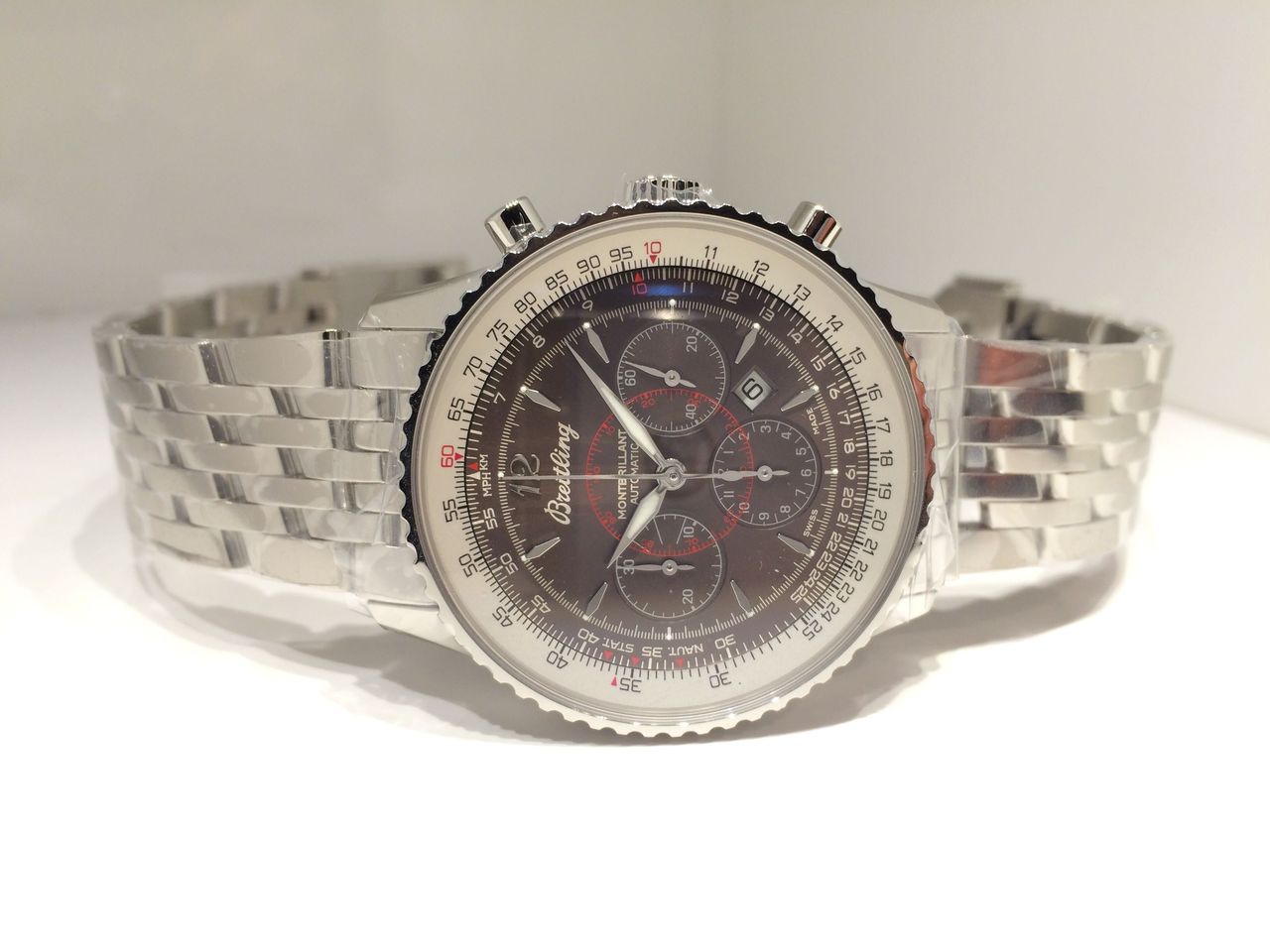 ブラウンダイヤルと白い計算尺、赤いメモリが絶妙なコントラストです…