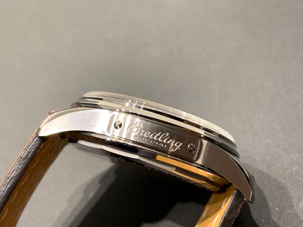 ケースサイドには「Breitling SPECIAL」と刻まれたプレートがはめ込まれています。