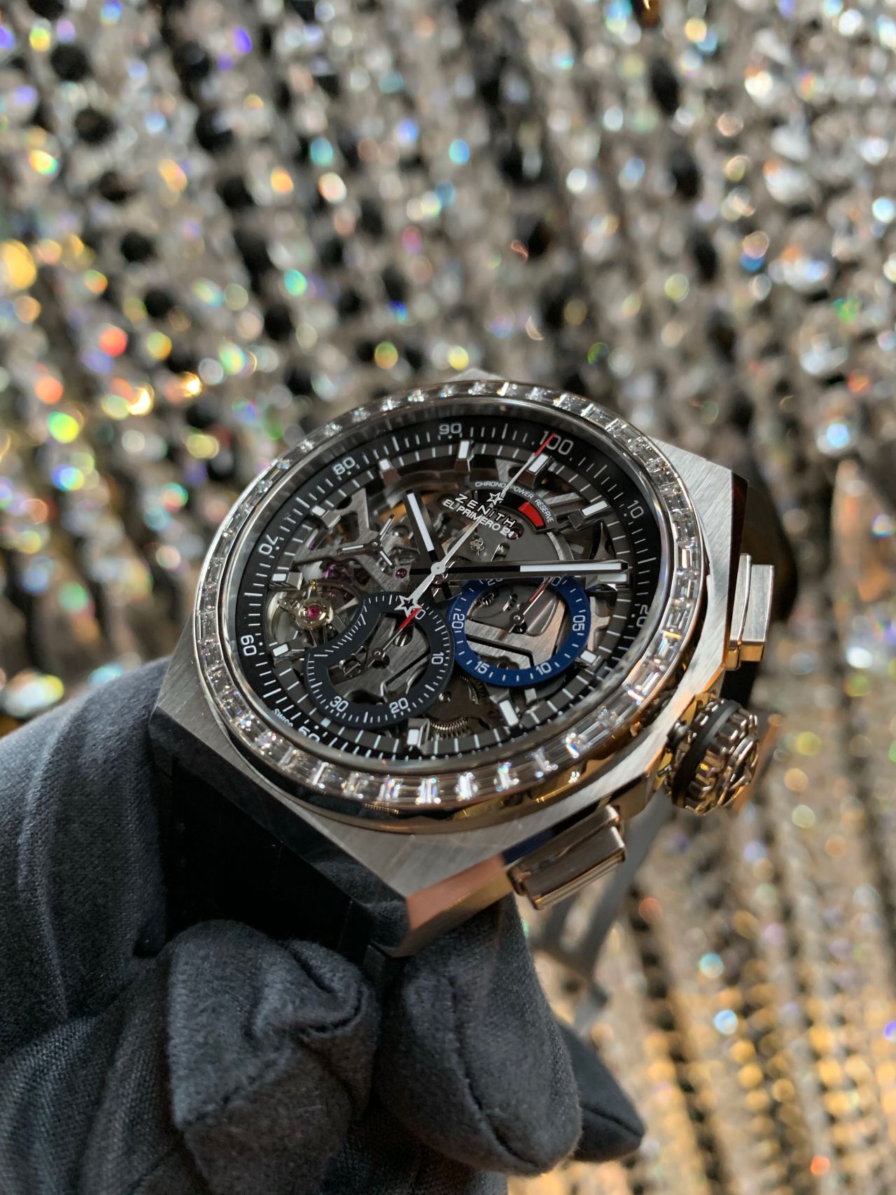 さすがZENITHとしか言いようの無い、外観だけで無く、ムーブメントにもこだわり抜かれた1秒で一回転するクロノグラフも見ものです!!