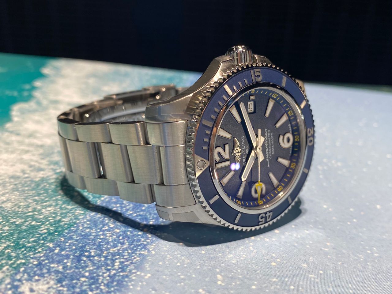 定番モデルにはないブルーの文字盤と