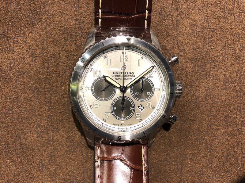 エレガントなシルバーのダイヤルがアンスラサイトのクロノグラフと
