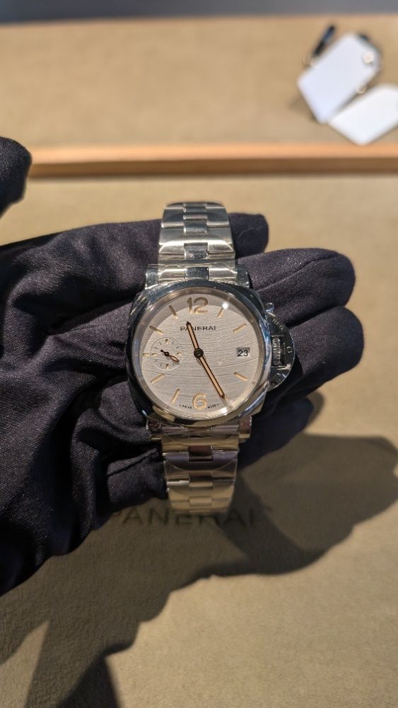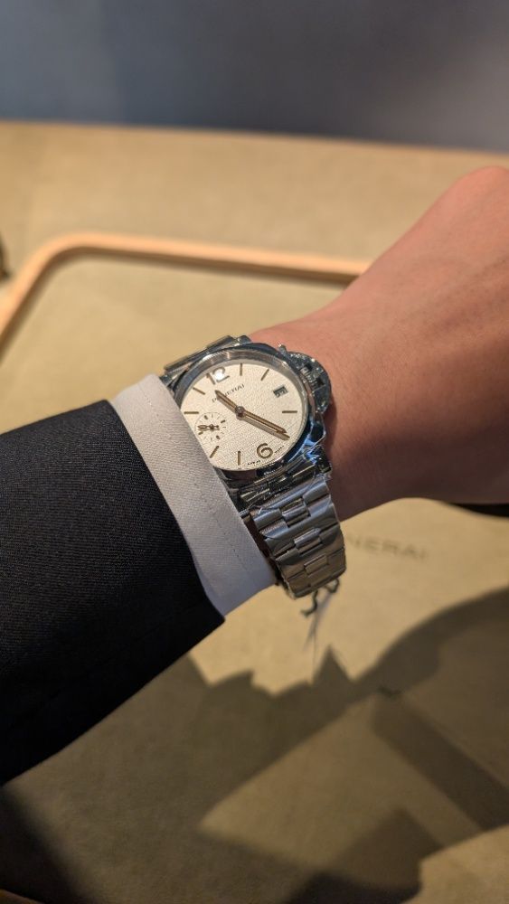 パネライでは珍しいブレスタイプで、ケースサイズも38mmと小ぶりで薄いのが特徴です。