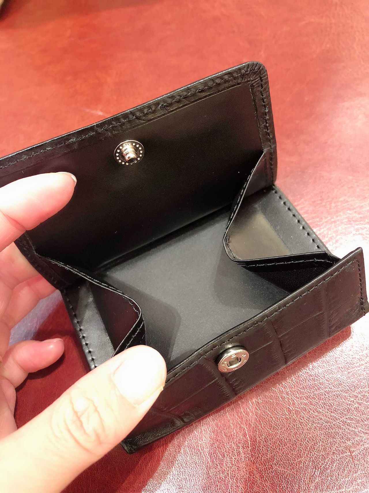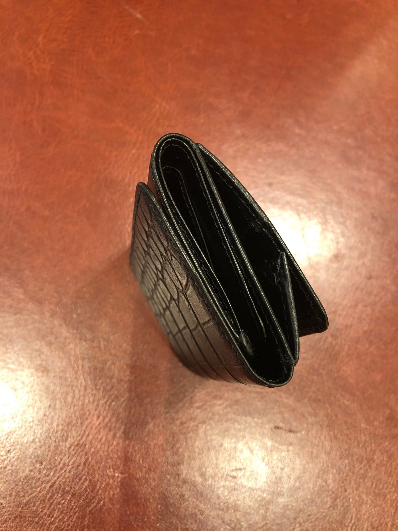 なめしを施された三つ折り財布です(^^)