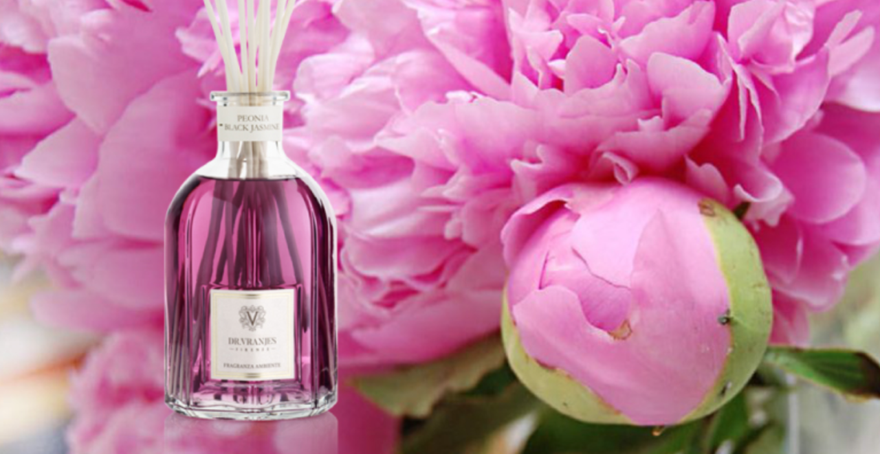 鮮やかなパープルピンクがインテリアに映えるPEONIA BLACK JASMINEの香りは、