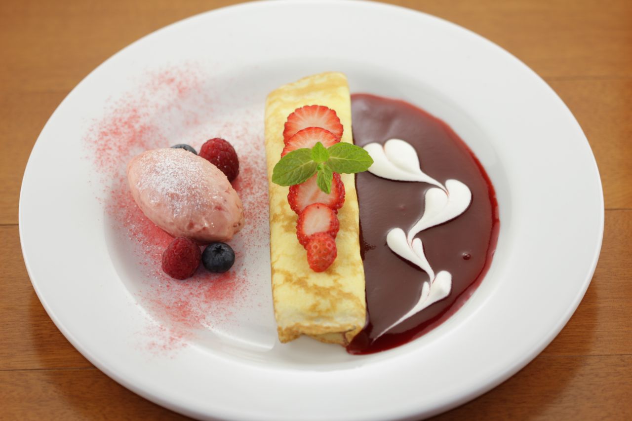自家製クレープに旬の苺を甘さ控えめの生クリームで包み、甘酸っぱさがクセに