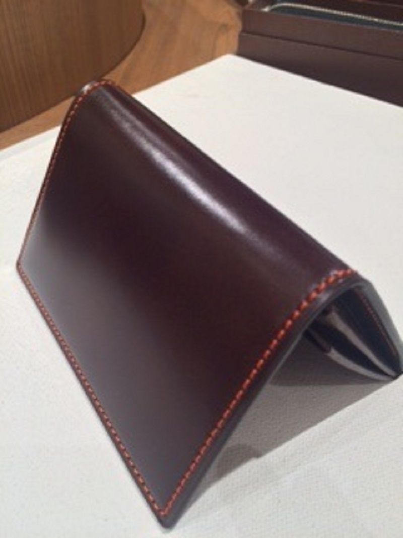 ブレイリオのコードバンは厳選された最上質の原皮のみを使用し、国内の染め職人が、水染めをさらに改良した染色技術で染め上げています。表面はツルっとしていて光沢があり、手入れも特には必要ないです。