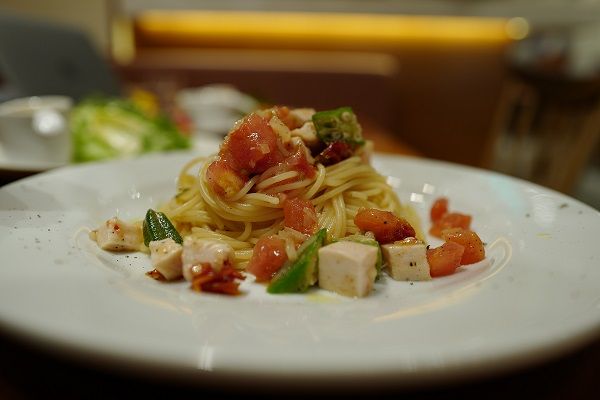 ・岡山県産森林鶏と二種のトマトの冷製パスタ ¥1300-