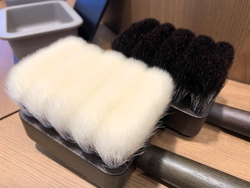 丸く柔らかな穂先で圧を感じながら優しく泡立てた後に、