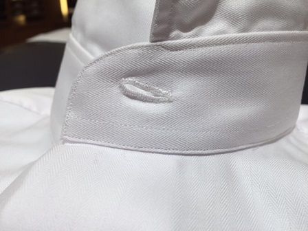 続いて第一ボタンですが、よく見ると斜めにボタンホールが作られています。