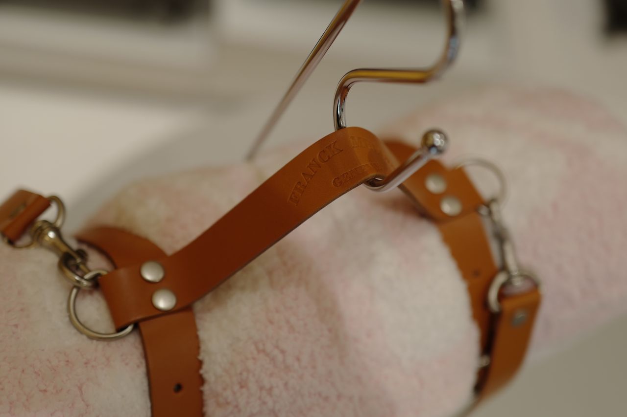 時計でおなじみのフランクミュラージュネーヴがレザーストラップに刻まれております。