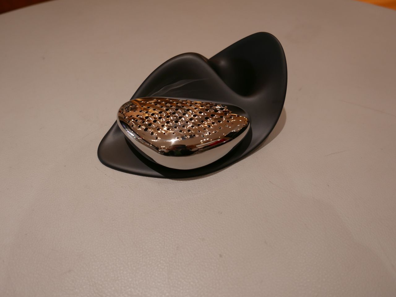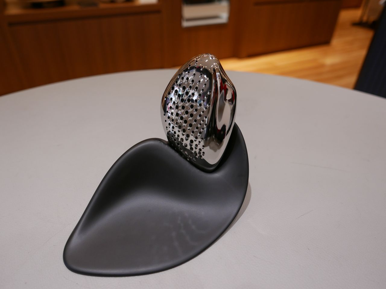 長い間水と砂によって磨かれた小石の自然な形を、チーズグレーターにした感性はすごいです。