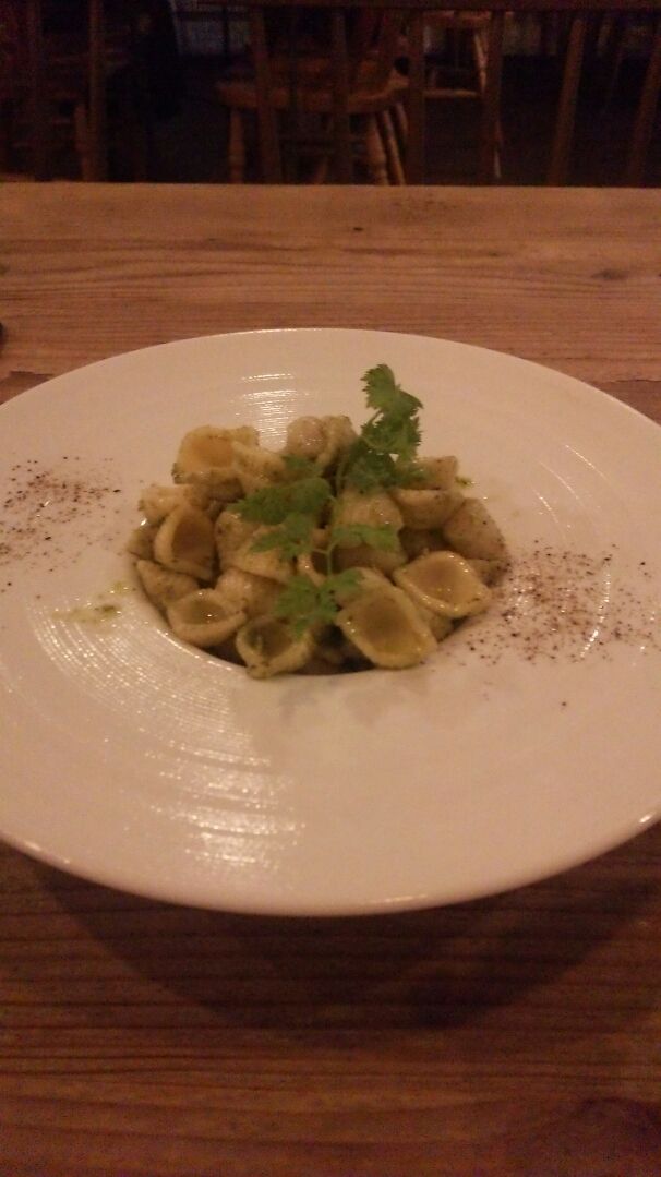 シーフードとパスタの前菜、徳田的にはニンニクの香りが強くてバジルが背景に隠れていたように思います。