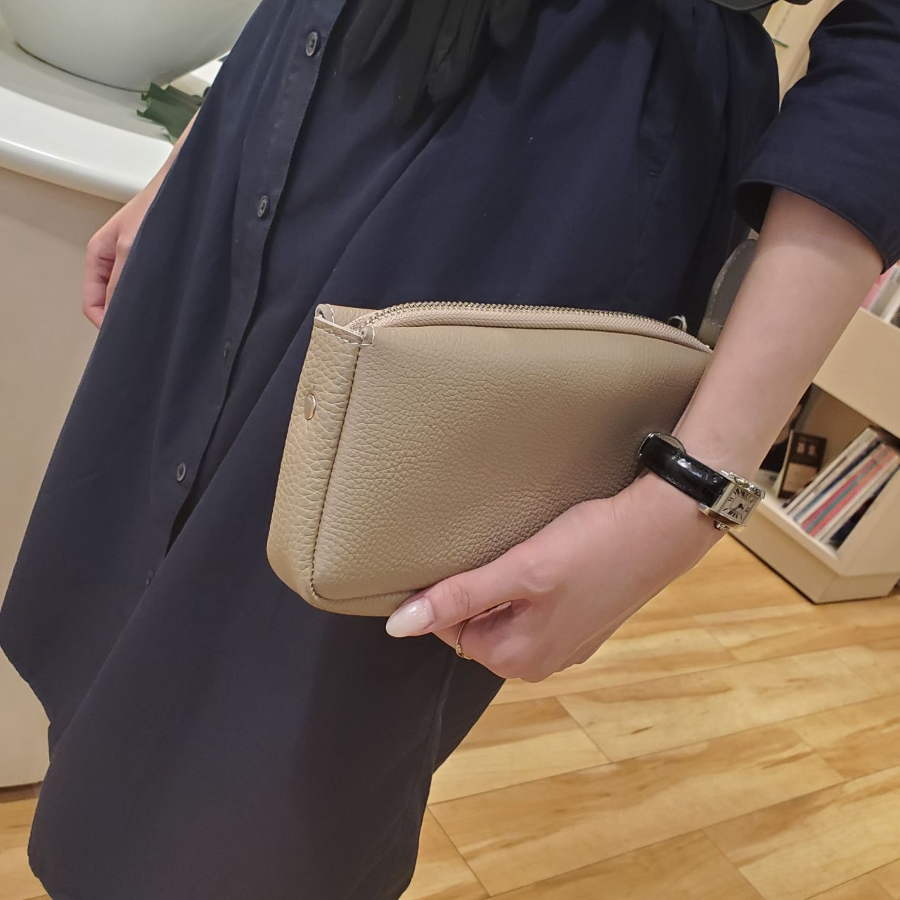 シンプルなデザインのシュリンクカーフのポーチです。