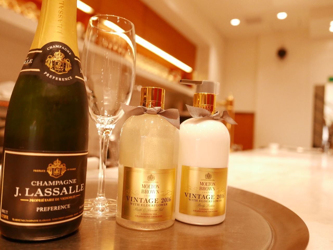 シャンパンボトルをイメージしたゴールドキャップ、