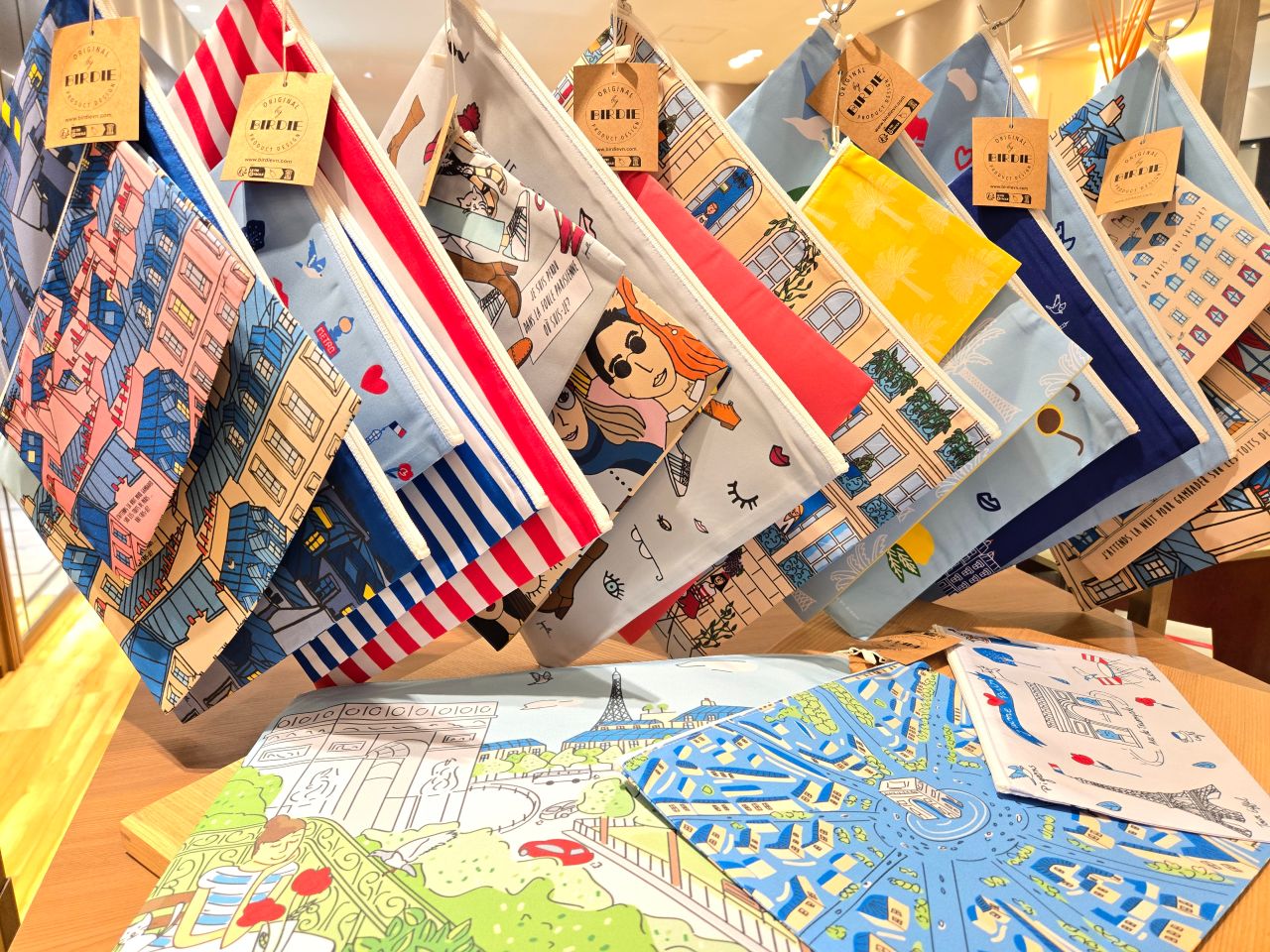 フランス人イラストレーターによる『ゆるかわいい』プリントの3連ポーチです。