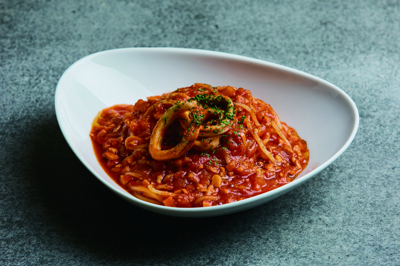 コリコリとした真イカの食感と旨味が詰まった自家製フレッシュトマトソース。