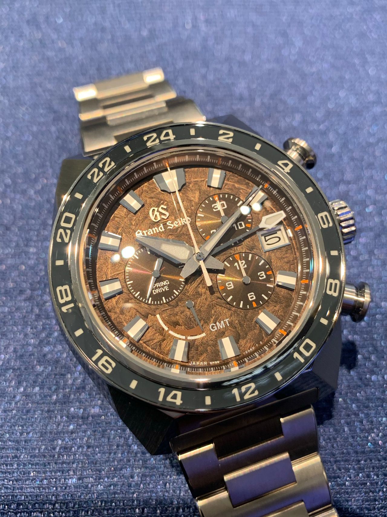 (難波)はい最近はクラシックデザインだけで無く、スポーツデザインのような商品も多数出ており、特にこのモデルはグランドセイコー独自のムーブメント、「スプリングドライブ」が誕生して20周年を記念して発表された限定500本の特別モデルです!
