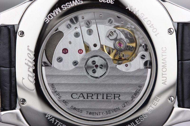 シースルーバックになっており、カルティエの自社ムーブメントが覗いてもらえるのも男心をくすぐる作りになっています。