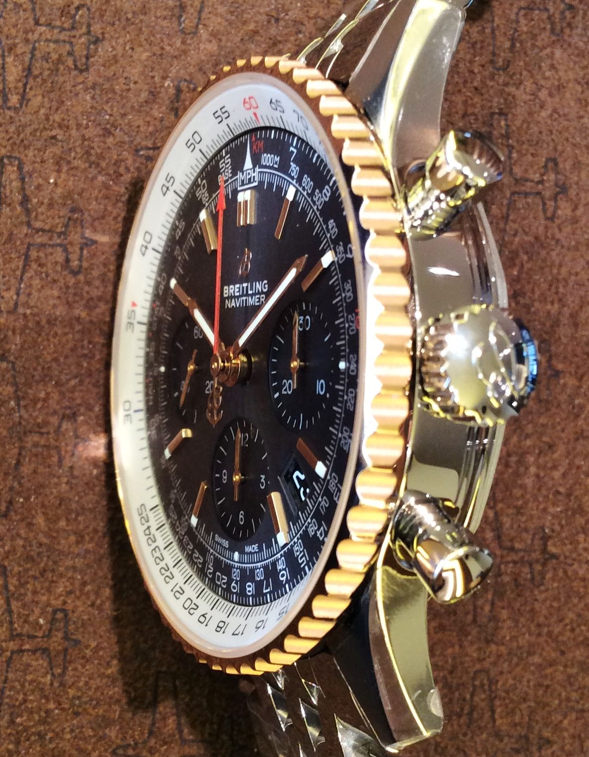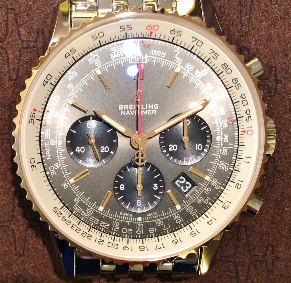 もちろんケース全体18Kゴールドもすごくかっこいいですが、この仕様にはいい意味で今までのナビタイマーの印象を裏切る傑作だと思いました!!