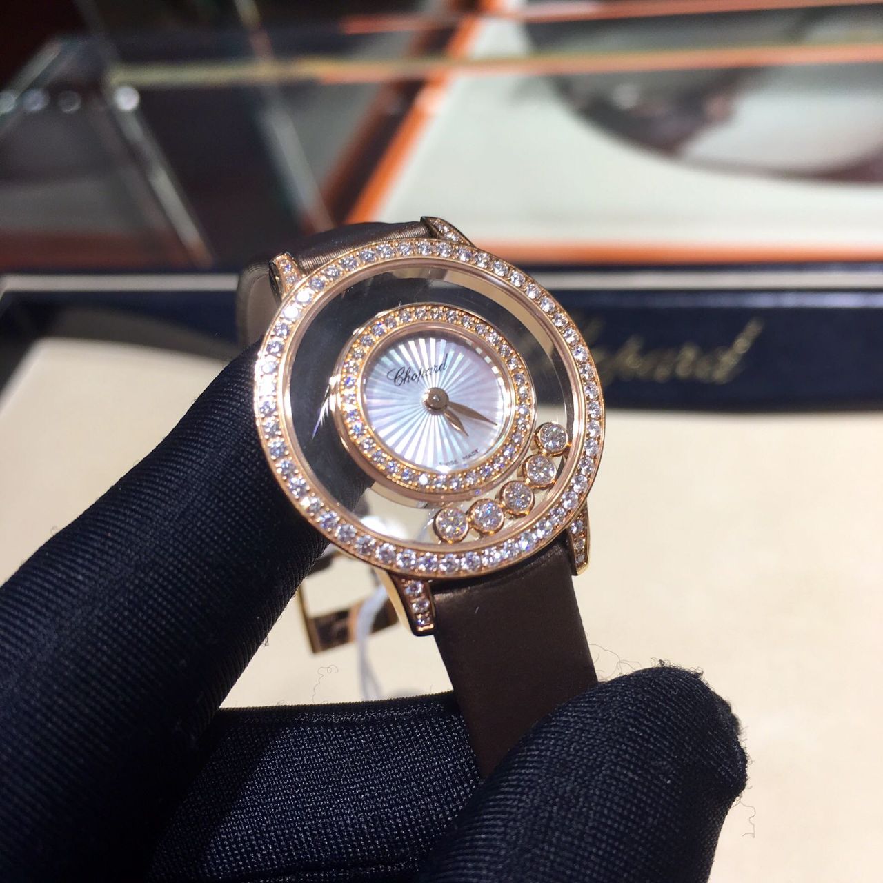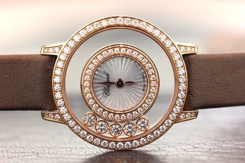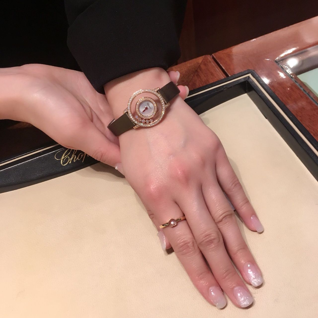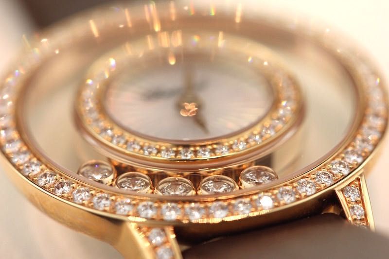 時計の中で揺れ動くダイヤモンドが女性の腕元をより綺麗に輝かせてくれ、
