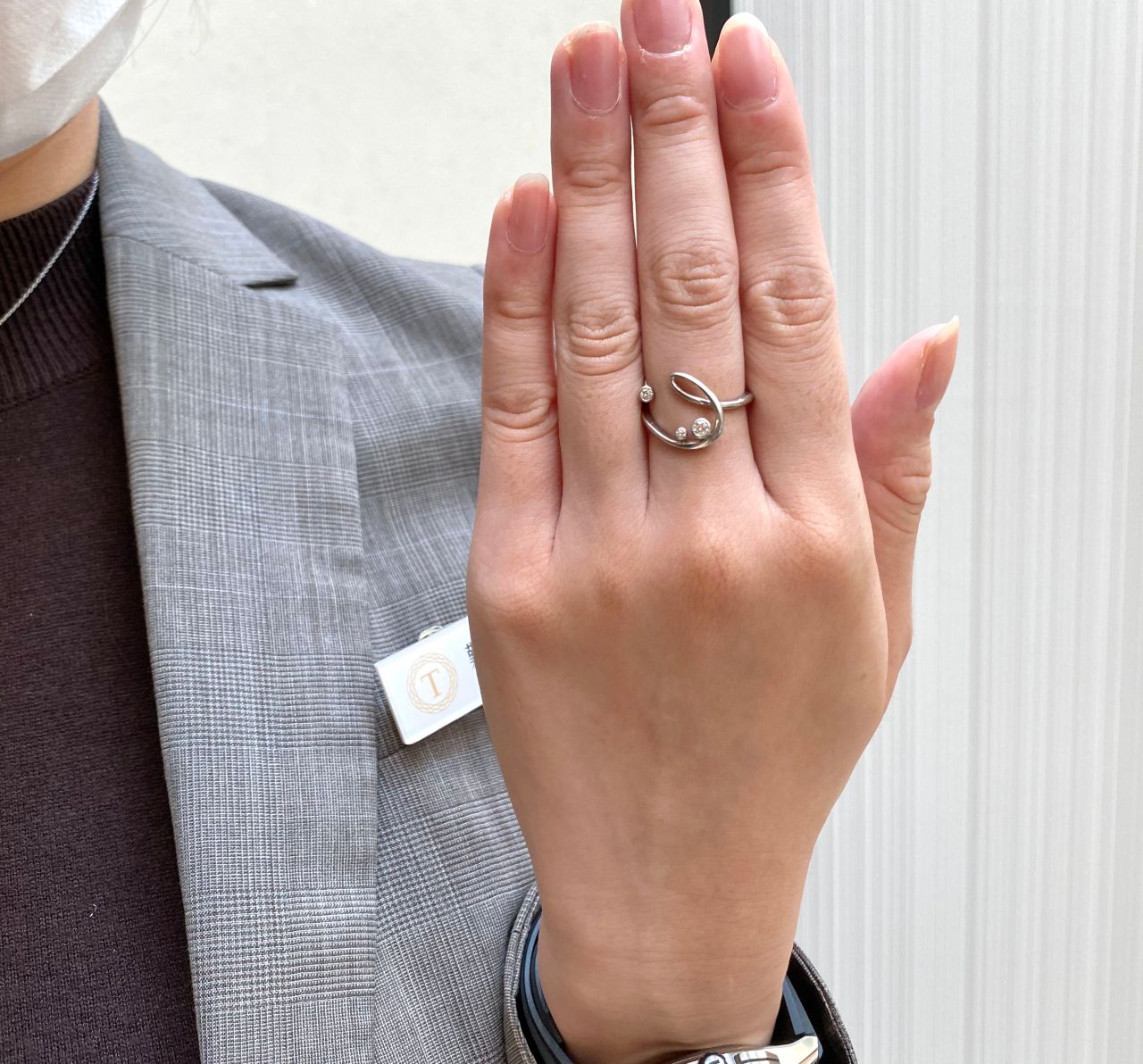 また、ピンキーリングを選ぶスタッフも多い中で、中指に存在感のある