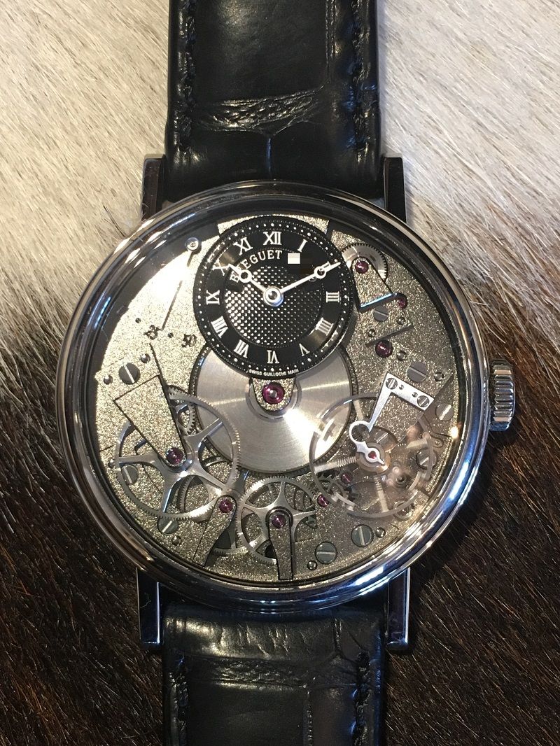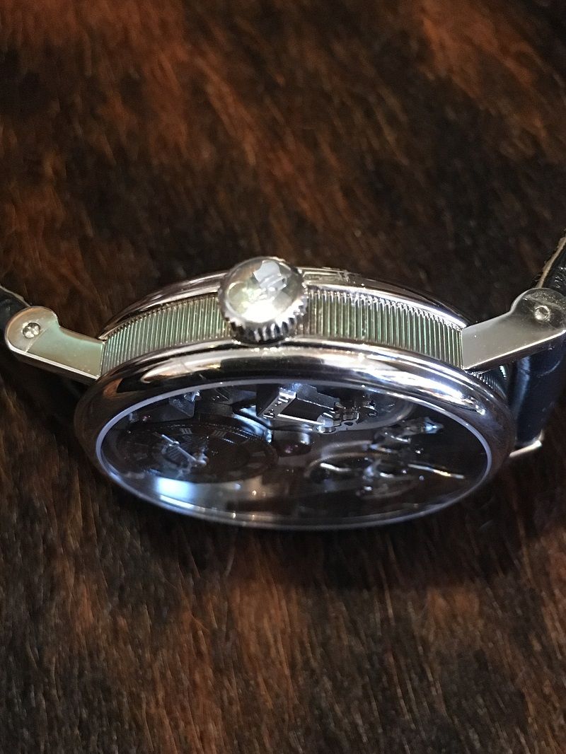 18Kホワイトゴールドのケースに、コインエッジ等の装飾も入っており、