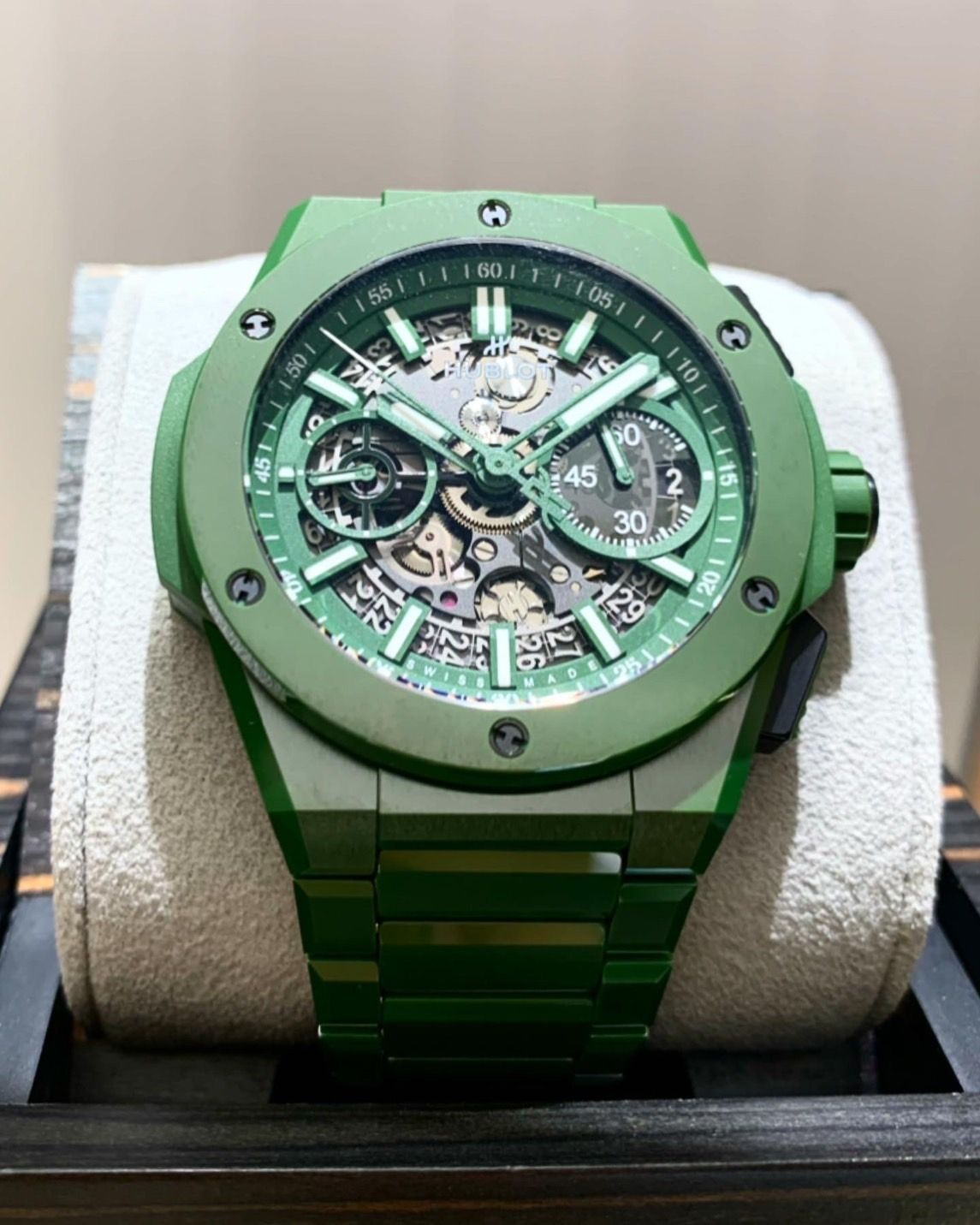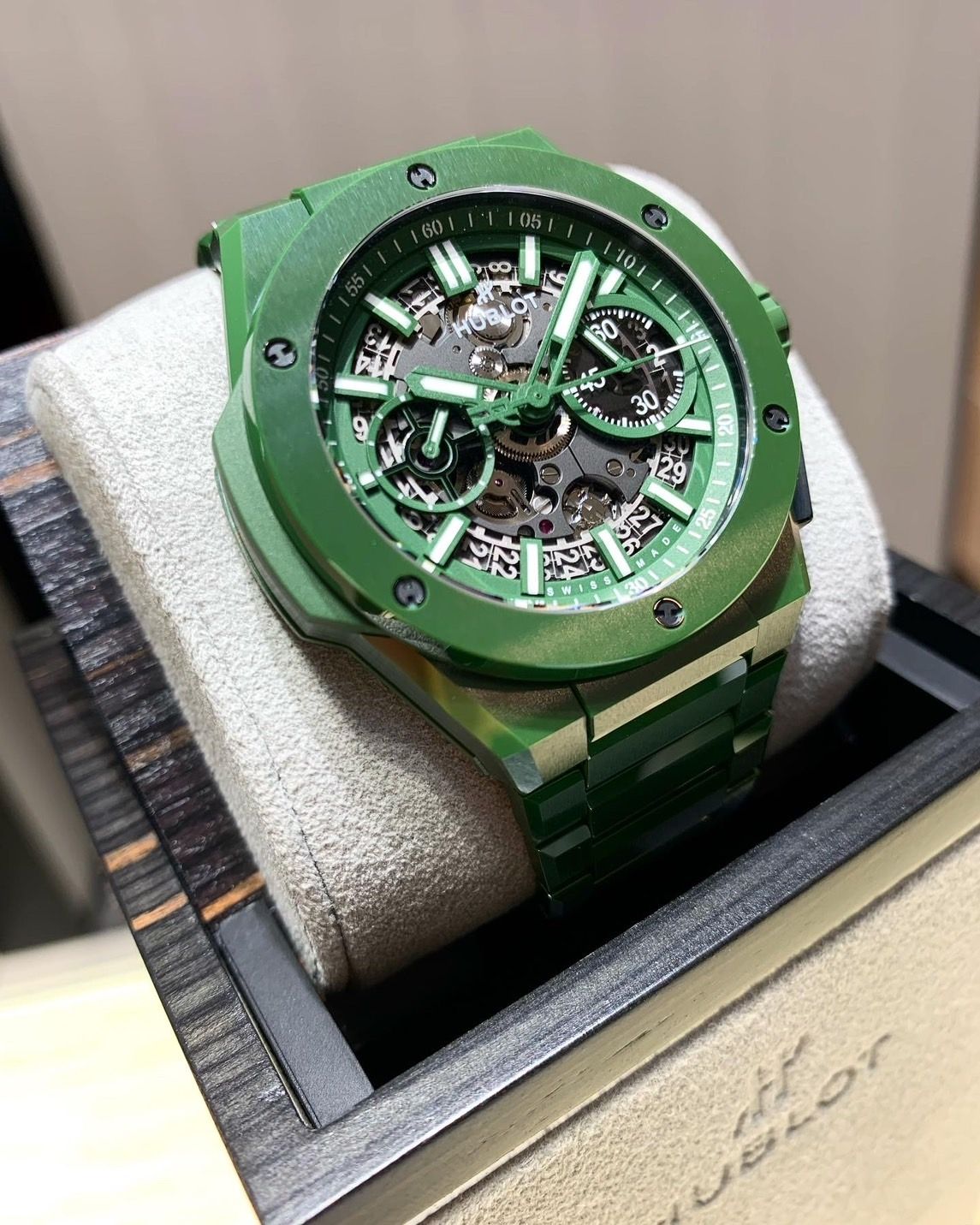 マットグリーンのスケルトンダイアルでカッコ良いモデルです。